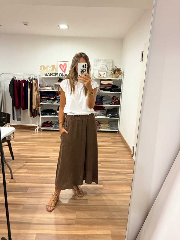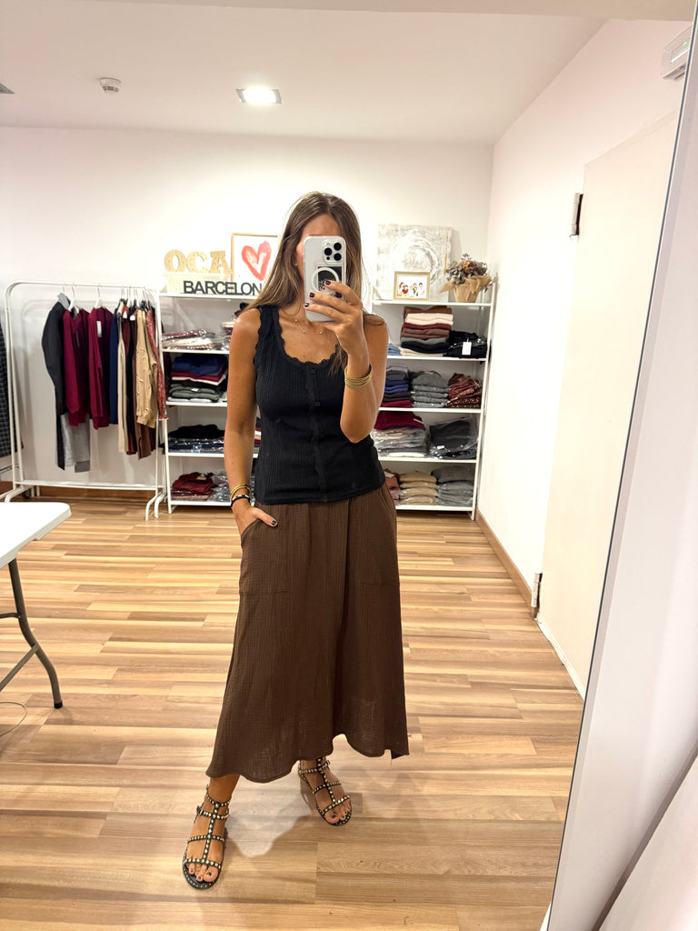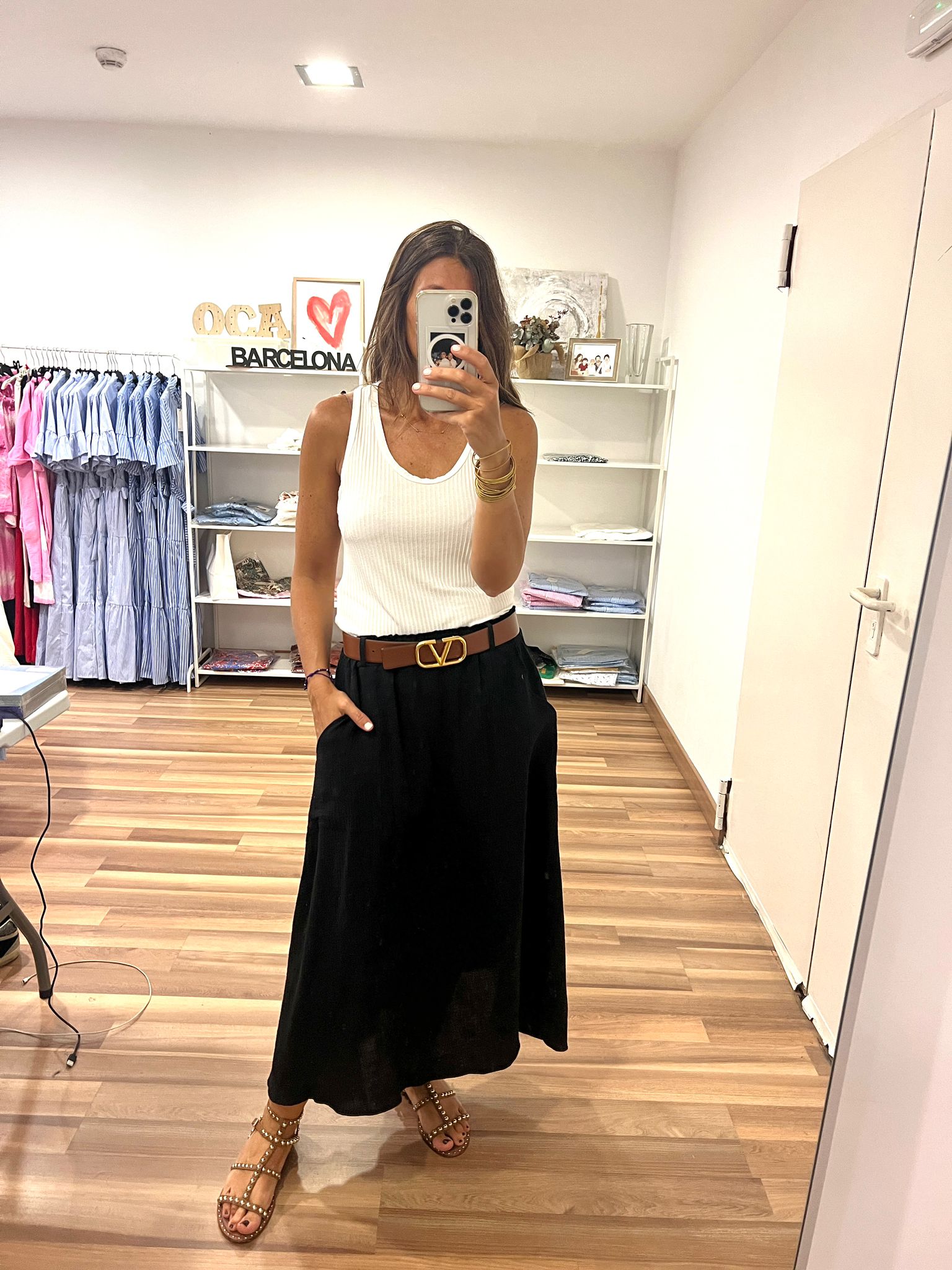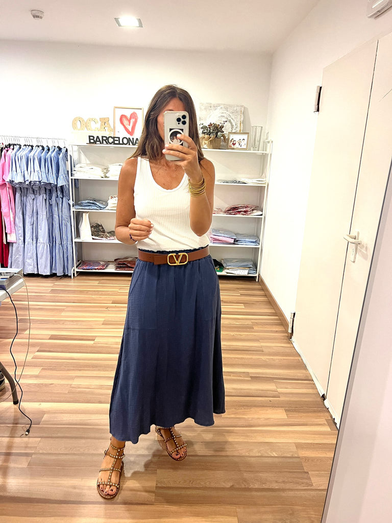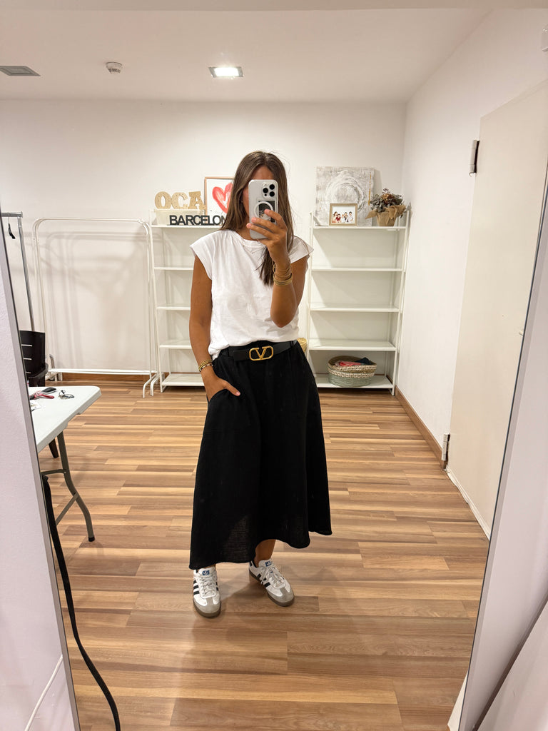 Falda muselina ideal , midi, con bolsillos laterales y trabillas para cinturón. Talla única