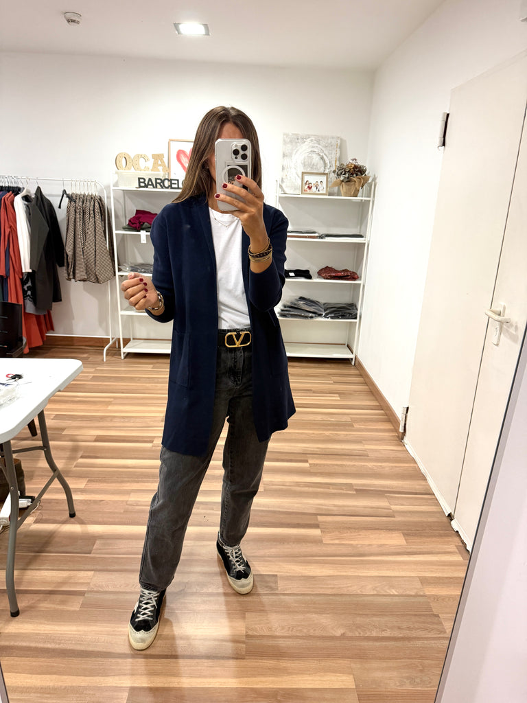 Cardigan midi, con manga larga y bolsillos delanteros. Talla única