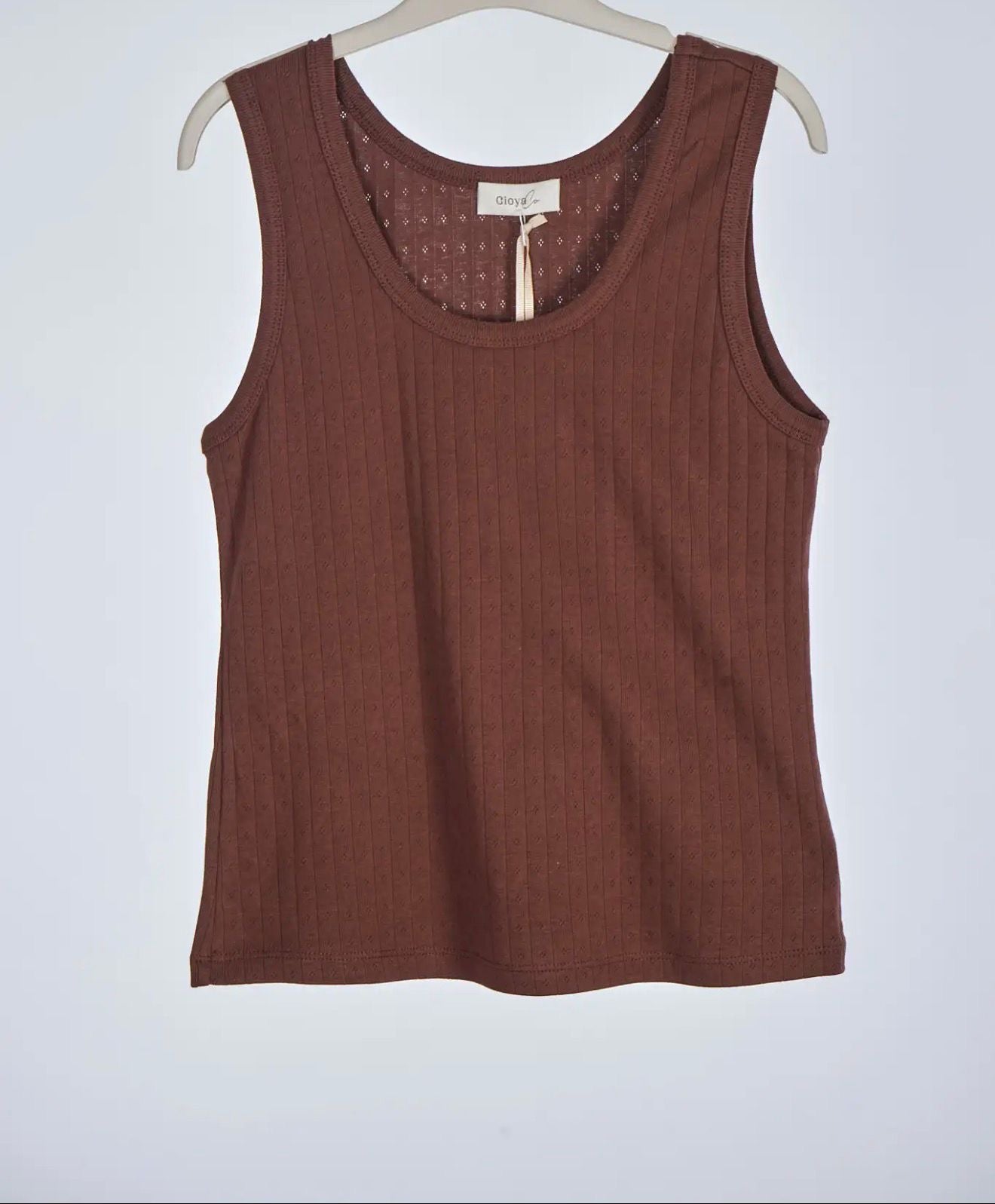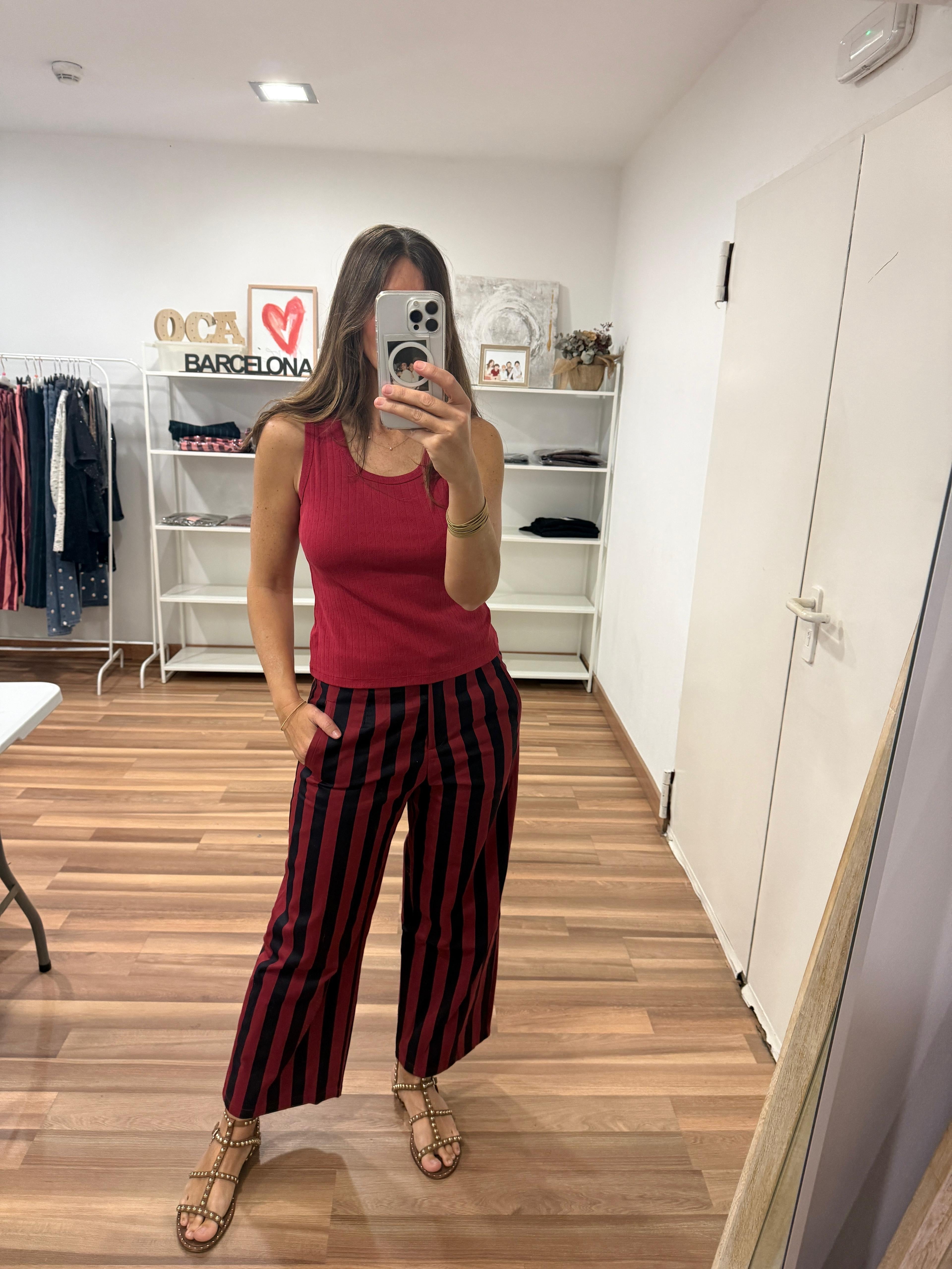 Camiseta de tirante ancho. Dibujo calado.