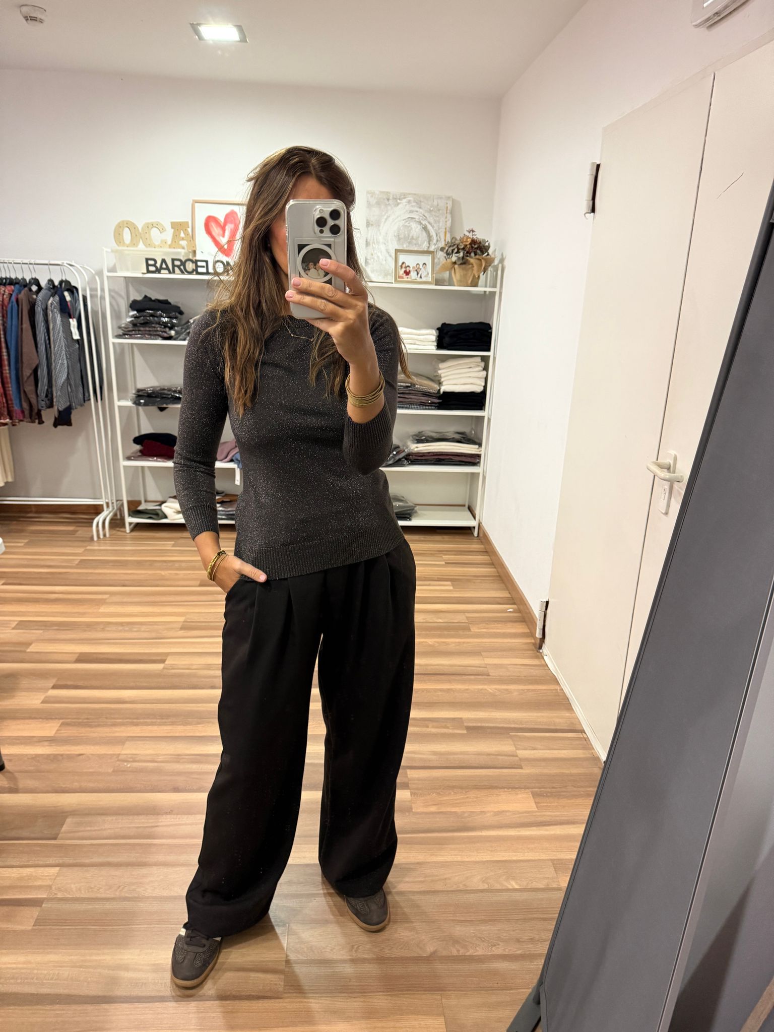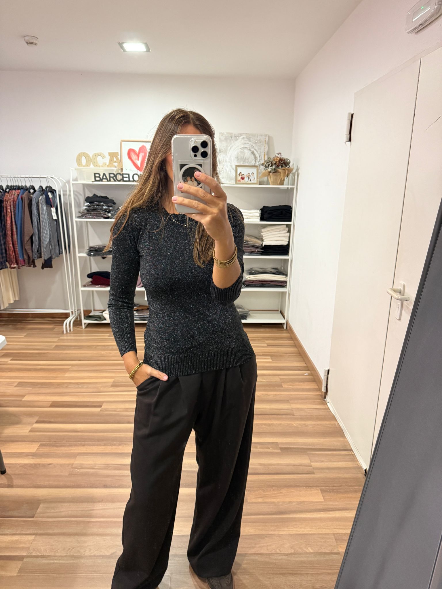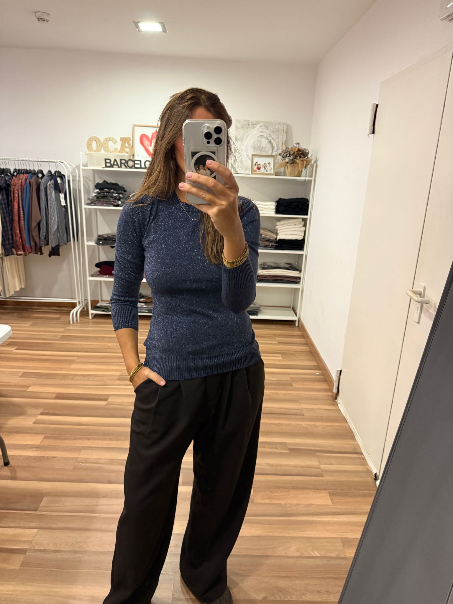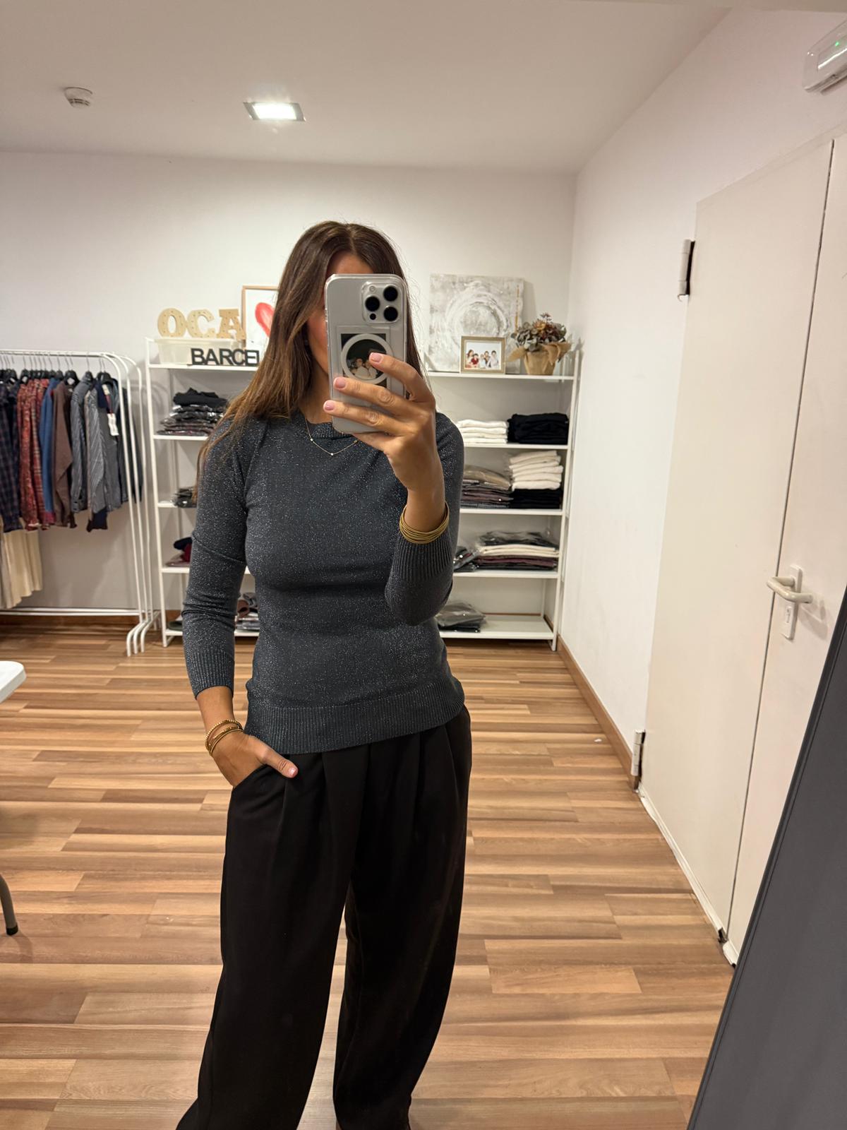 Jerseicito Brillibrilli cuello redondo. Queda ajustadito, tela elastica. Talla única.